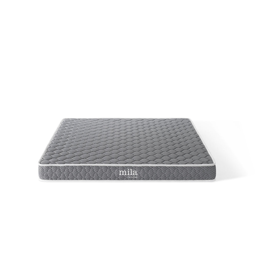 Restorative sleep is yours for the taking with the Mila 6" Memory Foam Mattress. This king size mattress is equipped with a layer of memory foam and thick layer of responsive foam that mold and conform to your specific weight and sleeping position. Wake up feeling rested with a memory foam mattress that relieves pressure points and reduces movement between two sleepers. A convenient mattress in a box, Mila delivers directly to your doorstep vacuum sealed, rolled, and packed into a portable box that offers easy maneuverability in hallways and up staircases. It takes about 2 hours for the mattress to expand fully in the summer and about 72 hours in the winter months. The perfect solution for guest and master bedrooms, this king mattress meets fire-resistant standards and is complete with a stretch diamond knit polyester cover to provide lasting protection.