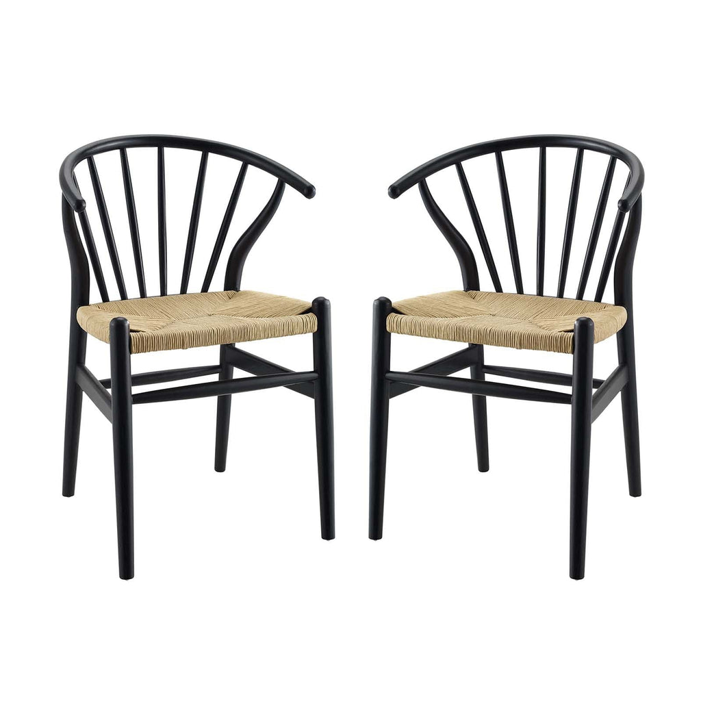 Bring Scandinavian style to your dining space with the Flourish Dining Side Chair Set of 2. Featuring a sweeping curved back, tapered wood legs, and classic spindles, the modern farmhouse design of this dining chair gets a contemporary update with delicate craftsmanship and stylish detail. The seat is made of paper rope, a new twine that is soft, anti-static and durable, while providing beautiful contrast and a soft texture. Complete with a solid wood frame and support rods make this piece a lasting choice for the dining room, kitchen table, or living area. Complement a variety of décor settings from mid-century to contemporary modern with this wood dining chair set.