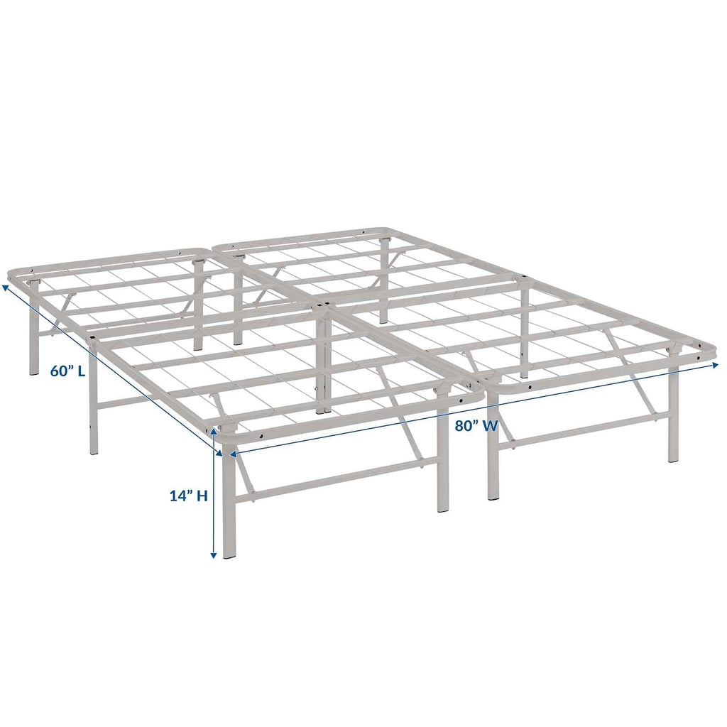 Sleep better with the Horizon Metal Bed Frame. Horizon is made with a reinforced stainless steel metal base for long-term comfort and uses with a generous 14 inches of space underneath to store hobby collections or seasonable clothing bins. Horizon comfortably supports up to 1300 lbs, easily folds away when not in use, and eliminates the need for a box spring with its heavy duty platform frame construction. Complete with non-marking foot caps to keep your carpets and floor safe, Horizon is a low profile modern bed frame that supports the standard mattress types on the market: memory foam, spring, latex or hybrids. Available in twin, full, or queen, Horizon reduces annoying squeaks and unpleasant bending or buckling, while transforming your home décor with a selection of stylish color options. Designed to provide lasting support for years to come, Horizon prevents saggy mattresses and increases the mattress lifespan while delivering a better-made bed frame solution for your home. No tools required. Mattress not included.
