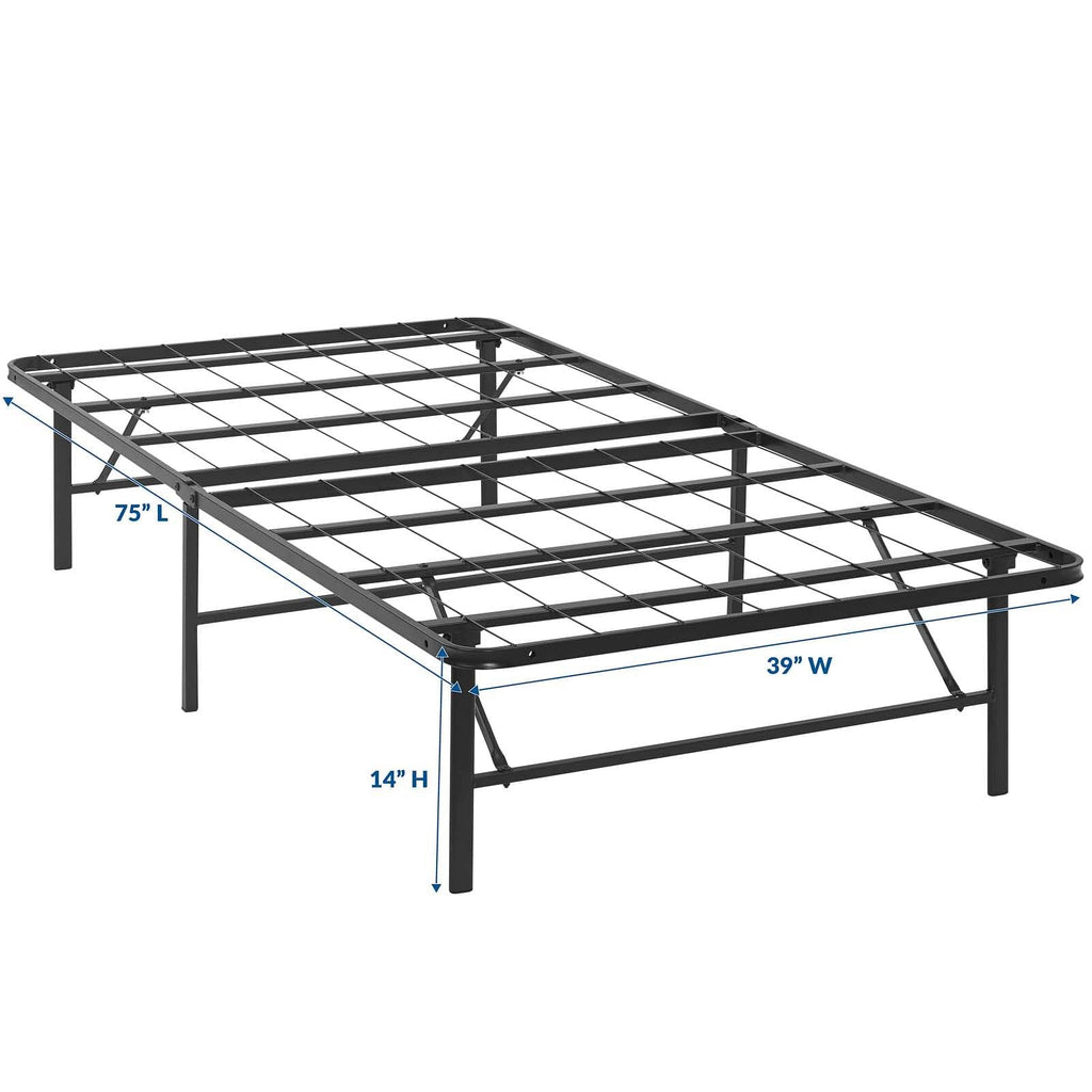 Sleep better with the Horizon Metal Bed Frame. Horizon is made with a reinforced stainless steel metal base for long-term comfort and uses with a generous 14 inches of space underneath to store hobby collections or seasonable clothing bins. Horizon comfortably supports up to 1300 lbs, easily folds away when not in use, and eliminates the need for a box spring with its heavy duty platform frame construction. Complete with non-marking foot caps to keep your carpets and floor safe, Horizon is a low profile modern bed frame that supports the standard mattress types on the market: memory foam, spring, latex or hybrids. Available in twin, full, or queen, Horizon reduces annoying squeaks and unpleasant bending or buckling, while transforming your home décor with a selection of stylish color options. Designed to provide lasting support for years to come, Horizon prevents saggy mattresses and increases the mattress lifespan while delivering a better-made bed frame solution for your home. No tools required. Mattress not included.