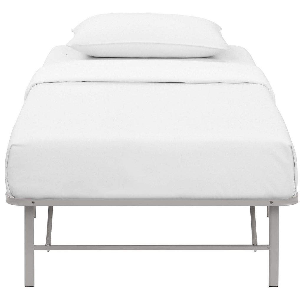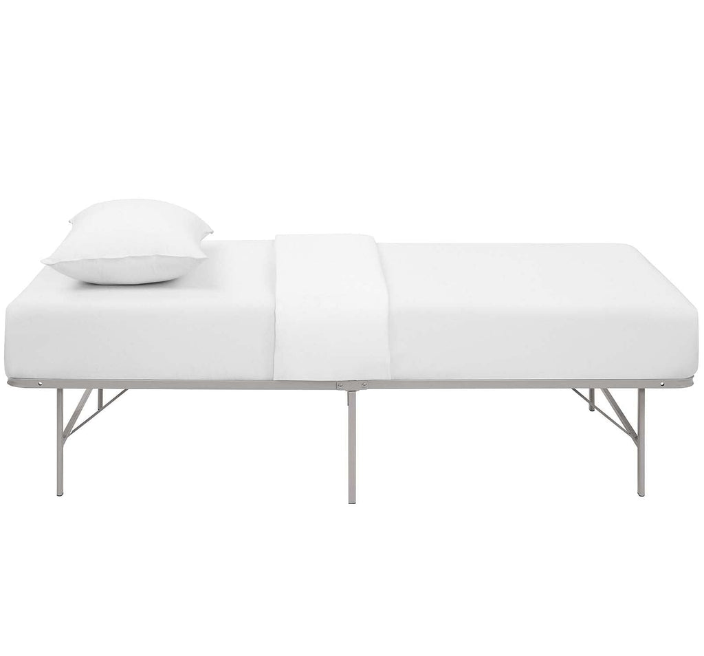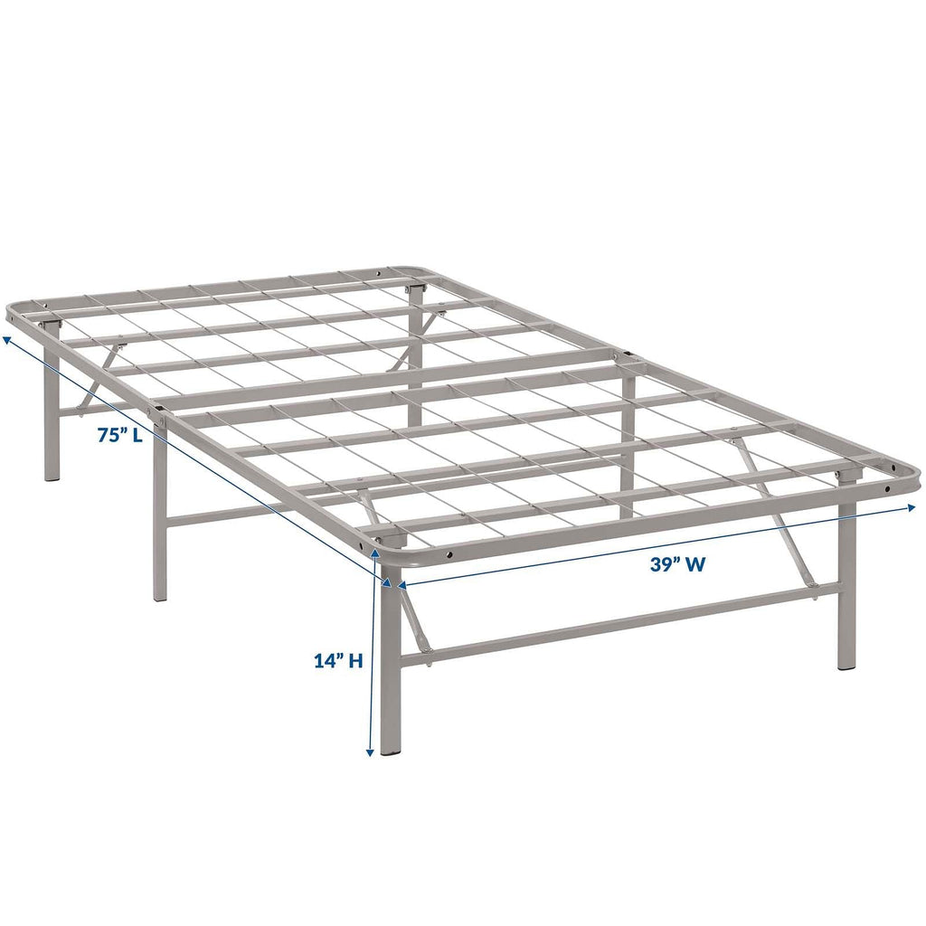 Sleep better with the Horizon Metal Bed Frame. Horizon is made with a reinforced stainless steel metal base for long-term comfort and uses with a generous 14 inches of space underneath to store hobby collections or seasonable clothing bins. Horizon comfortably supports up to 1300 lbs, easily folds away when not in use, and eliminates the need for a box spring with its heavy duty platform frame construction. Complete with non-marking foot caps to keep your carpets and floor safe, Horizon is a low profile modern bed frame that supports the standard mattress types on the market: memory foam, spring, latex or hybrids. Available in twin, full, or queen, Horizon reduces annoying squeaks and unpleasant bending or buckling, while transforming your home décor with a selection of stylish color options. Designed to provide lasting support for years to come, Horizon prevents saggy mattresses and increases the mattress lifespan while delivering a better-made bed frame solution for your home. No tools required. Mattress not included.