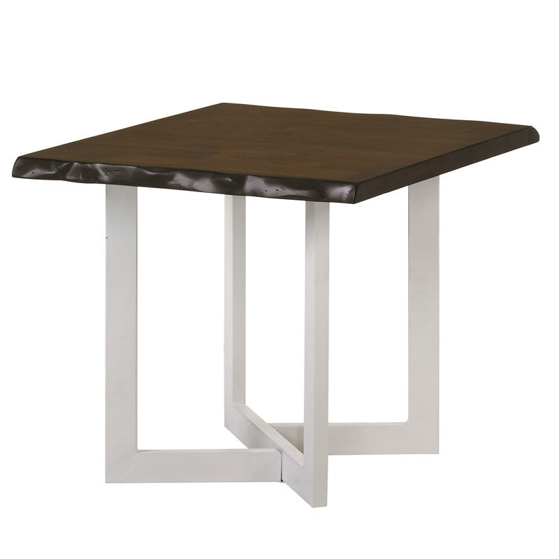 - Live edge-inspired tabletop adds natural character and dimension