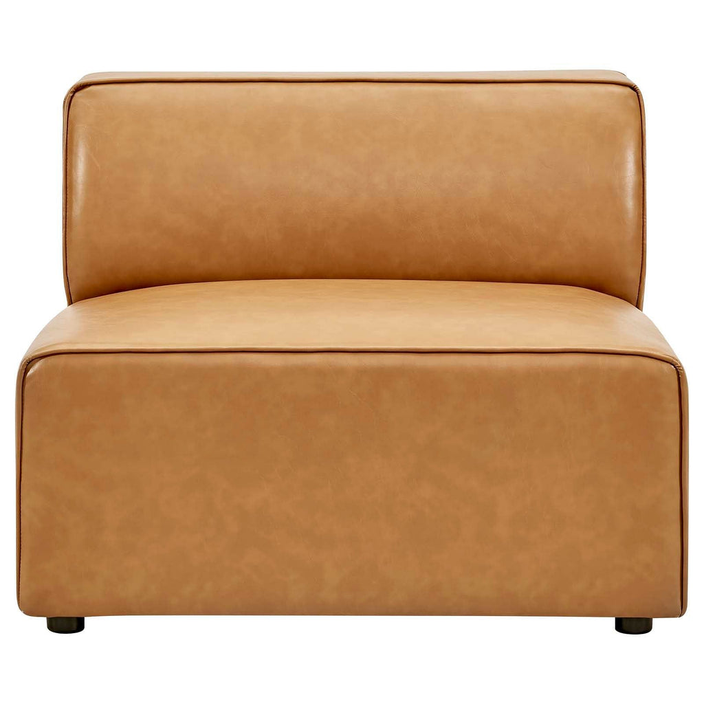 Kick back and relax with the Mingle Vegan Leather Armless Chair. Designed to wash away the hindrances that obstruct visual space, Mingle comes expansively designed with generous seating and dense foam padding that allows for just the right amount of giving. Mingle easily positions according to the needs of the moment and features rich vegan leather upholstery with elegant piping and plastic legs for steady support. Host animated living or lounge room get-togethers with a modular sectional seating assortment perfect for contemporary modern décors.