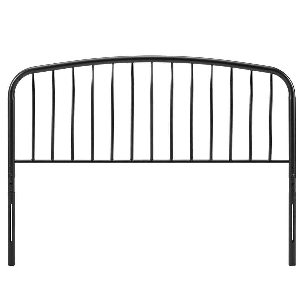 Inspire new energy in your master bedroom or guest suite with the Nova Metal Queen Headboard. Putting a contemporary modern twist on a popular cottage farmhouse design, this metal headboard features a subtle arching shape and sleek spindles. This headboard for queen bed frames is crafted with powder-coated iron for a sturdy construction that lasts. Create a neutral backdrop for bedding and sham styles of all types with a queen metal headboard that is height adjustable with seven mounting positions for a customizable fit.